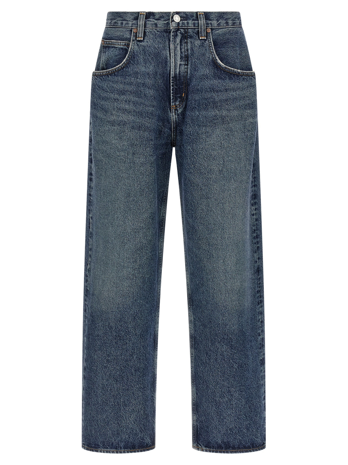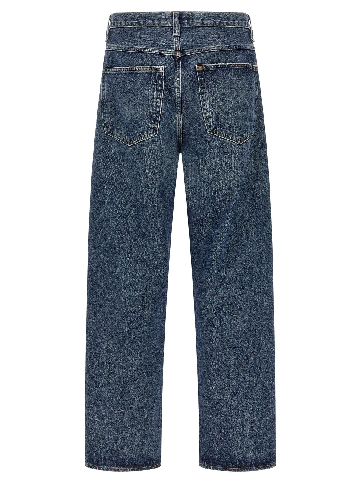 'fusion' stonewashed cotton denim jeans with used details, Zip and front button closure, Wide straight leg, Five pockets._x000d_