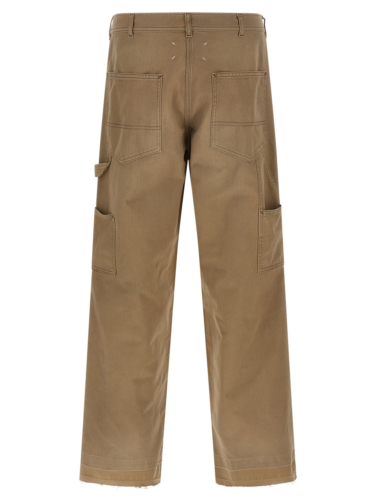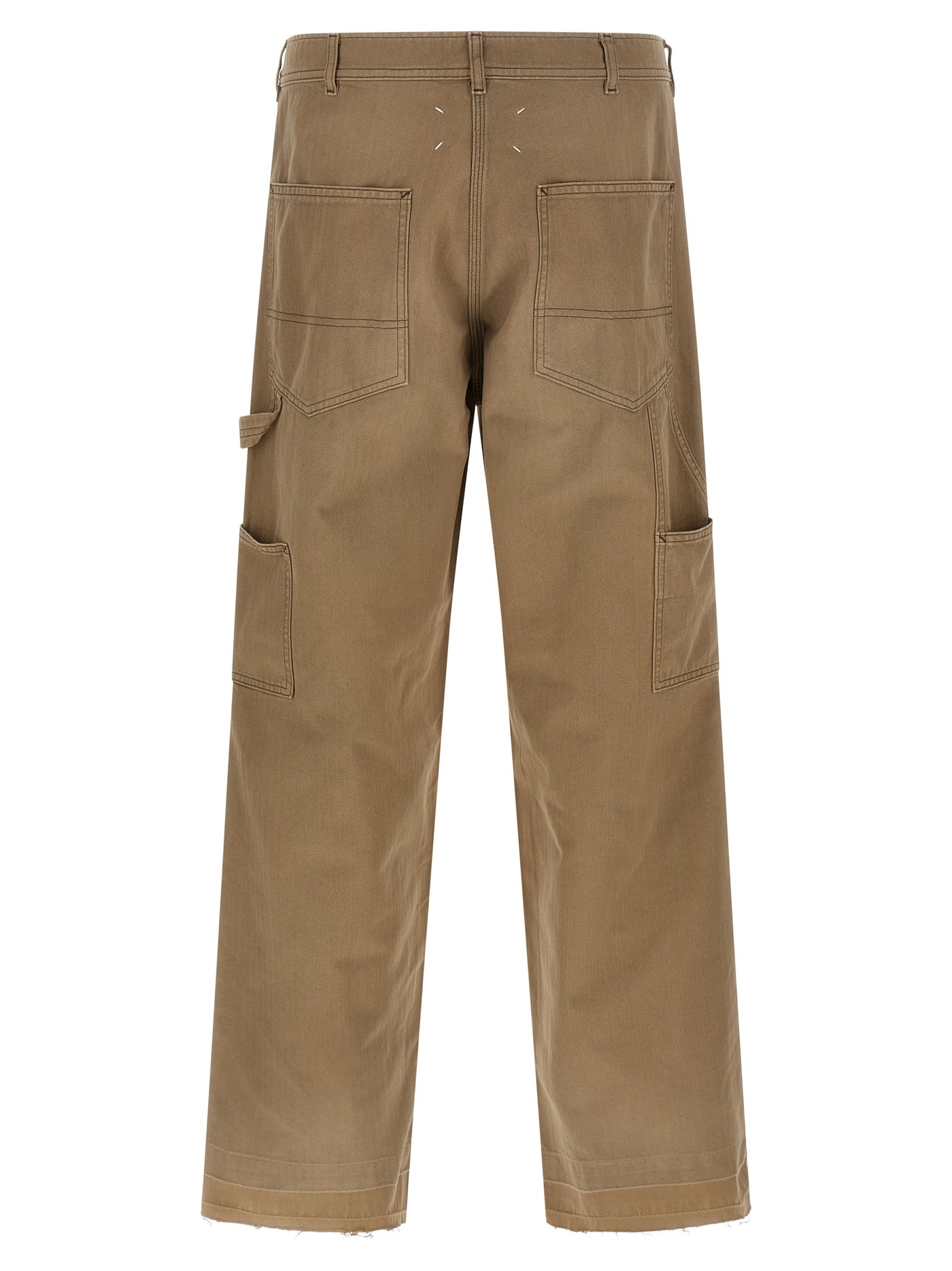 Workwear pants in herringbone cotton canvas, wide and straight leg, front zip and button closure, five pockets, leg bottoms with raw cut hem and trompe l'oeil turn-up crease, 'Four stitches' at the back. Size and Fit - true to size fit