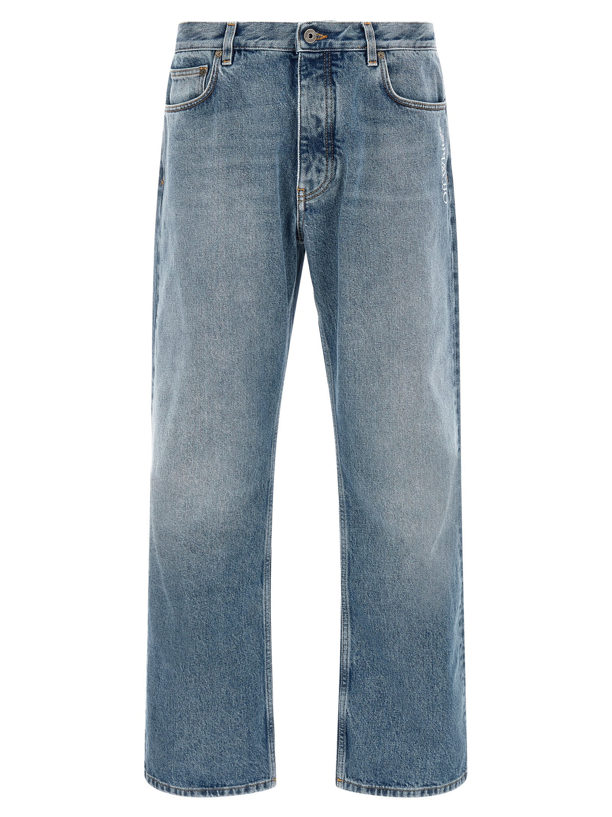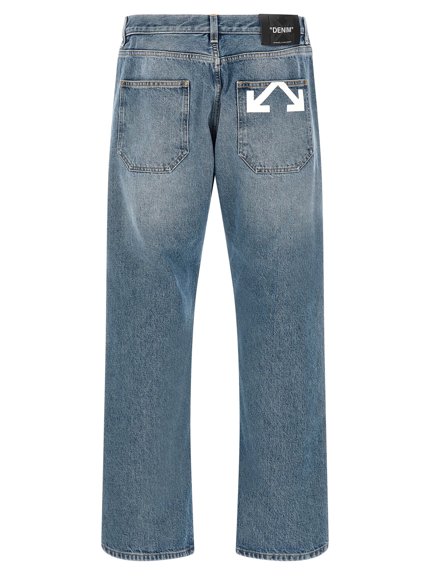 Cotton denim jeans with 'half arrow' print on the back pocket, 5-pocket model, Medium waist. Front button closure, Slightly loose fit with straight leg, Back logo tag. Size and Fit - Relaxed fit