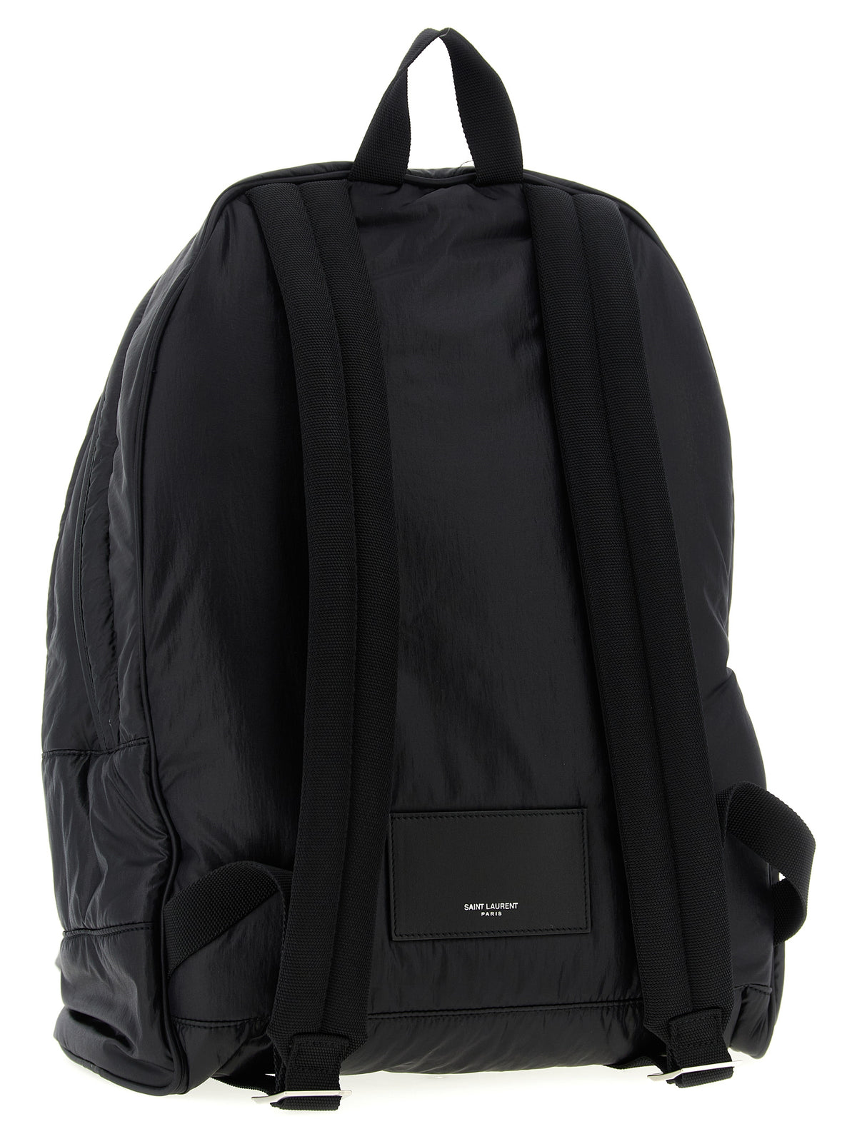 'City' shiny nylon backpack, zip pockets and tone-on-tone metal lettering logo on the front, zip closure, fixed top handle, adjustable shoulder straps. Size and Fit - W 32 x H 42 x D 14 cm