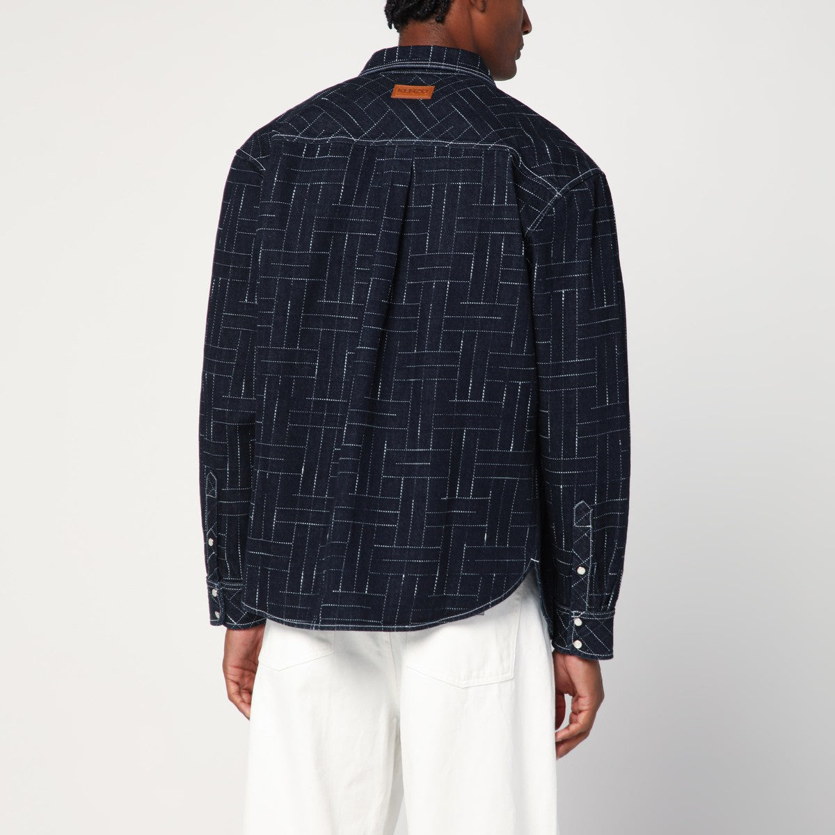 Kenzo shirt in blue cotton denim with all-over KENZO Weave jacquard, featuring a front closure with snap buttons, long sleeves with buttoned cuffs, a patch pocket on the chest, a back logo patch, a classic collar, and a curved hem. Size and Fit - Model wears size L Model measurements: Height: 187 cm Chest: 102 cm Waist: 76 cm Hips: 92 cm