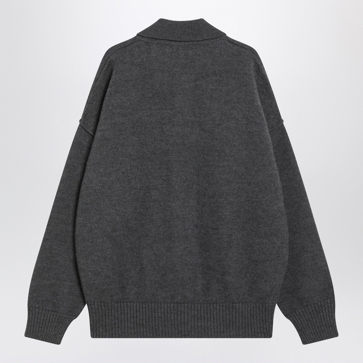 Ami Paris heather grey wool polo sweater, featuring long sleeves, dropped shoulders, ribbed edges, buttons on the front, and a contrasting Ami De Coeur logo intarsia on the chest. Size and Fit - Model wears size L Model measurements: Height: 187 cm Chest: 102 cm Waist: 76 cm Hips: 92 cm