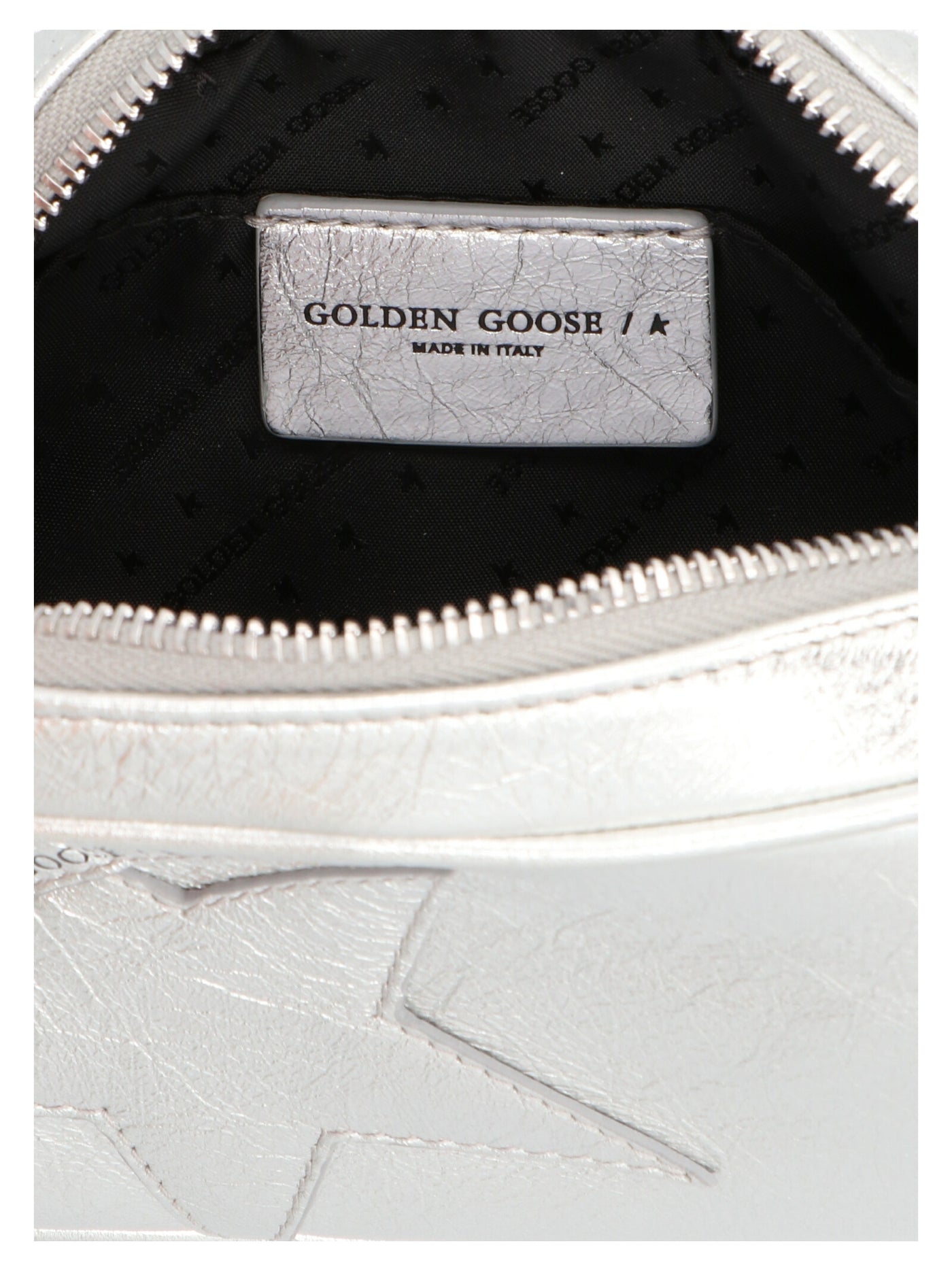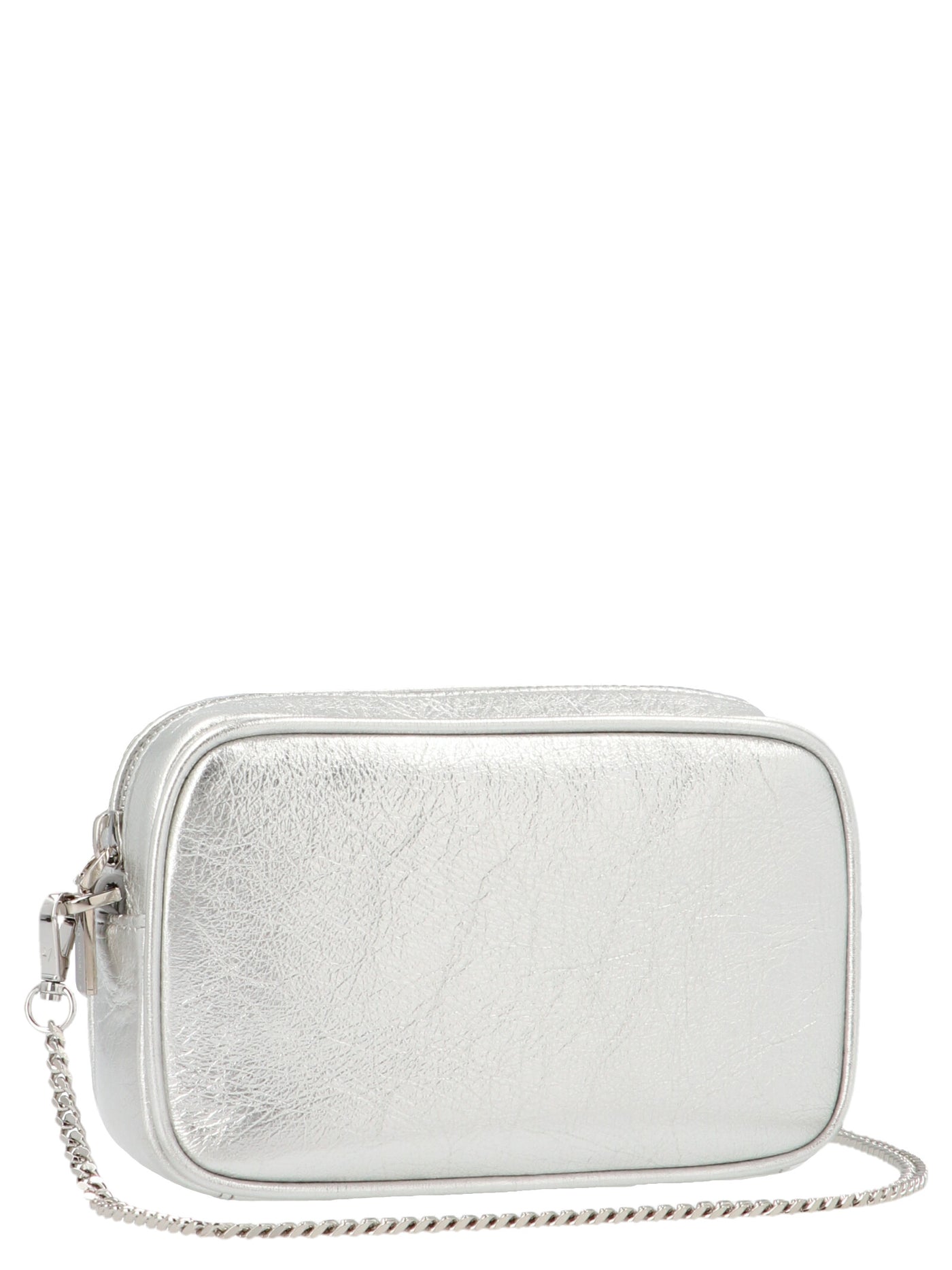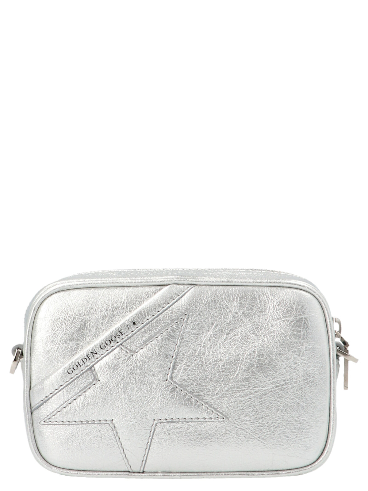 'Mini star' wrinkled-effect patent leather crossbody bag with tone-on-tone logo patch, adjustable and removable shoulder strap and zip closure. Size and Fit - W 17 x H 11 x D 6 cm