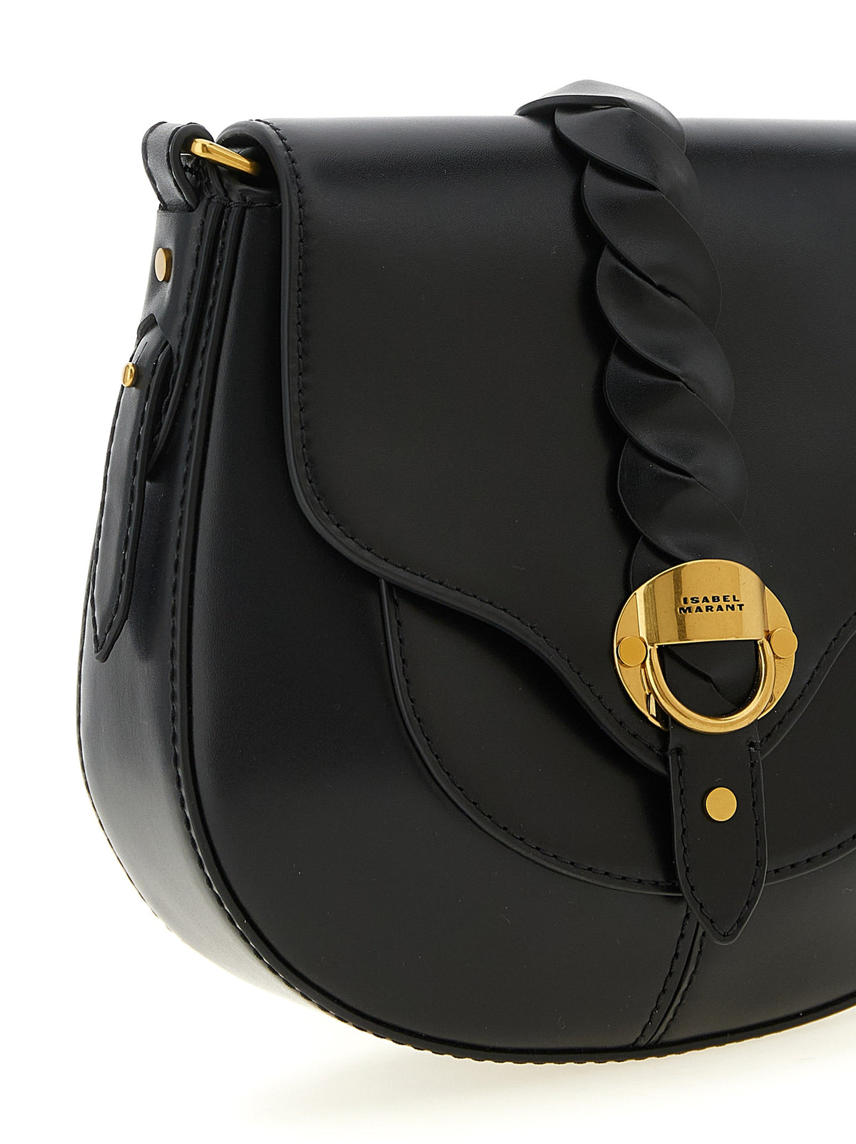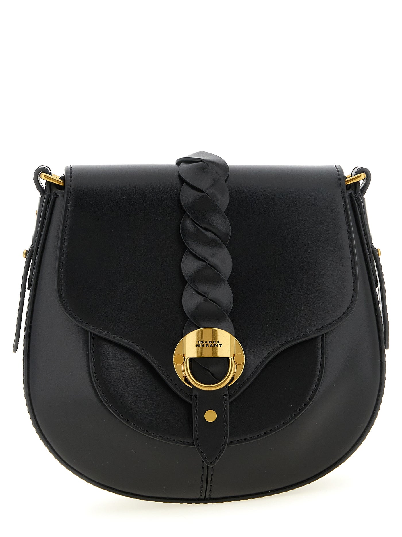 Small 'Altay' smooth leather crossbody bag, magnetic flap closure with braided strap and antiqued metal detail with engraved logo, back pocket, adjustable shoulder strap. Size and Fit - W 24 x H 23 x D 6 cm