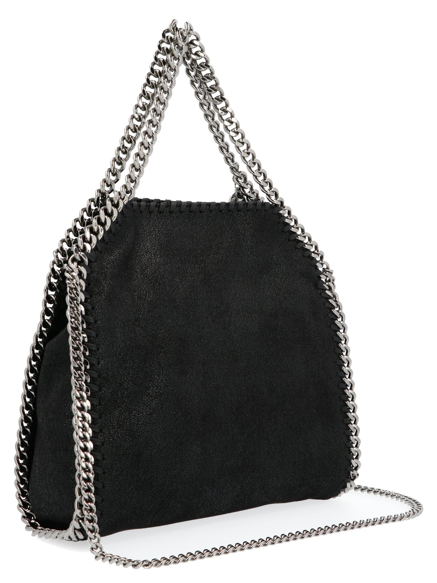 Stella McCartney 'Falabella' mini handbag in eco Shaggy Deer leather with 3 silver chains. JULIAN SUSTAINABLE - These products are leather-free and cruelty-free Size and Fit - W 26.5 x H 23.5 x D 10 cm Handle: 14 cm Strap: 105 cm