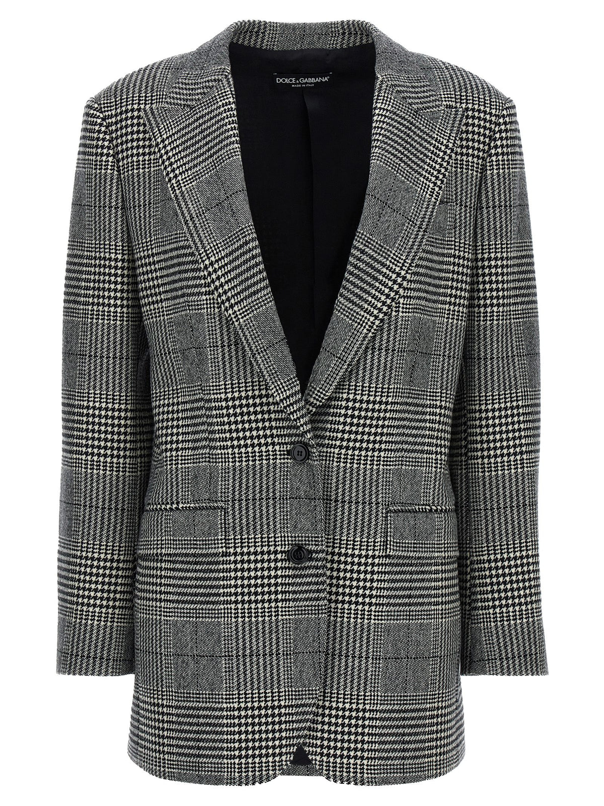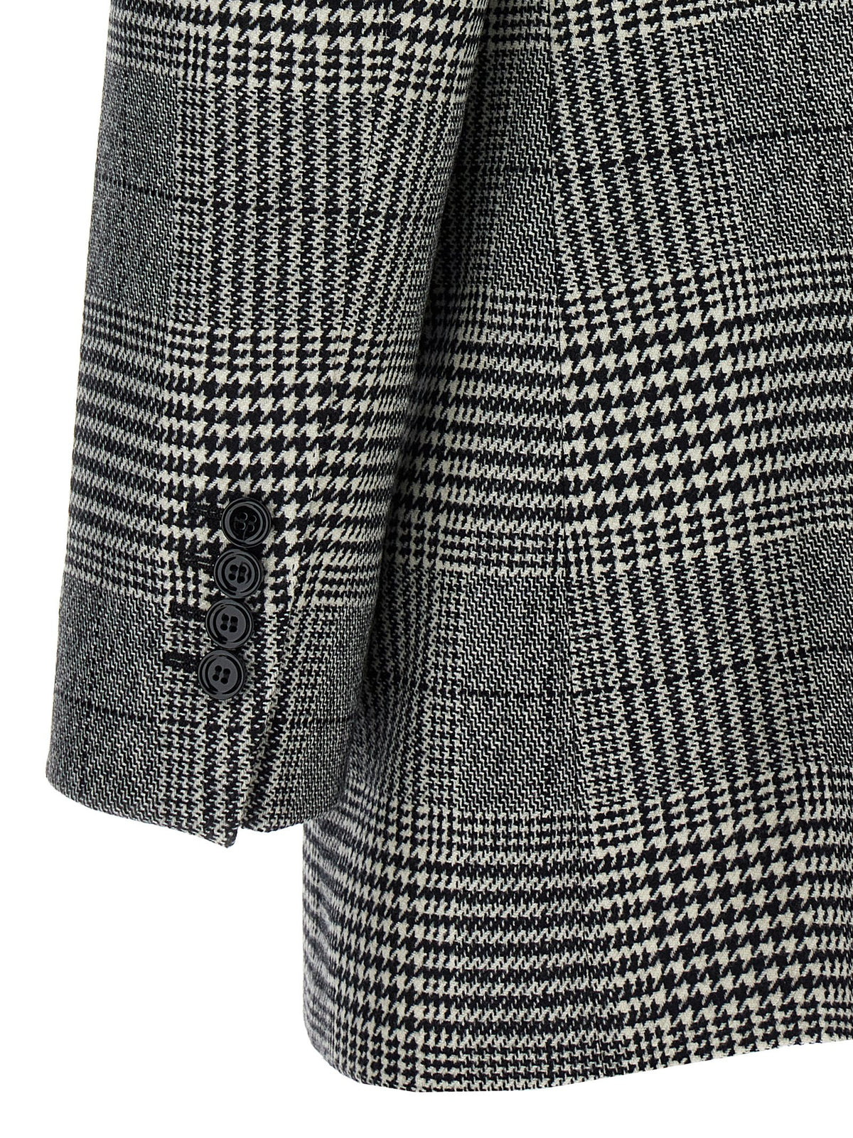 'pied de poule' cashmere blend blazer with front button closure, Back split, Slightly padded shoulders, Pockets, Long cuffed sleeves. Size and Fit - True to size fit
