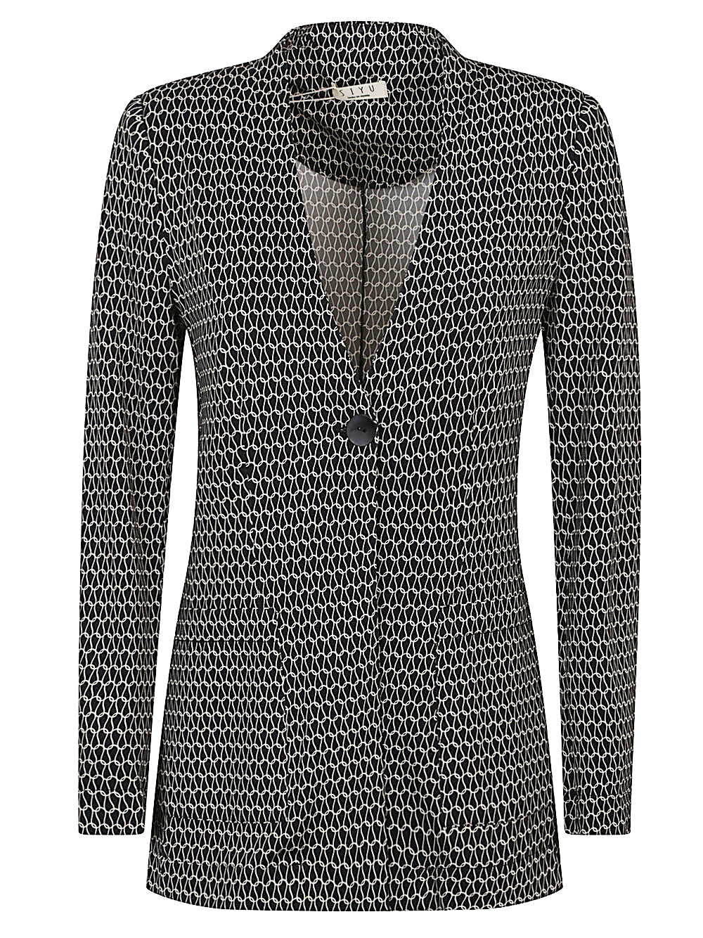 Jacket made of viscose with all-over multicolor print, V-neck, front button closure, two front patch pockets, straight hem. Printed single-breasted jacket Size and Fit - This piece fits true to size. We recommend you get your regular size. Model is 1,75m / 5ft 8in wearing size 36 (ES)