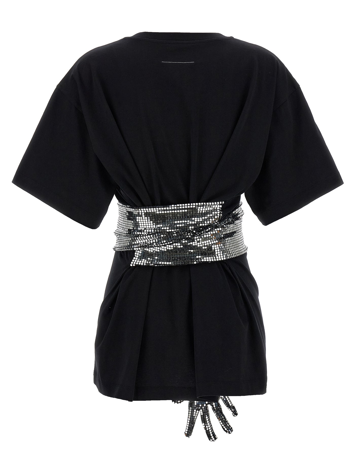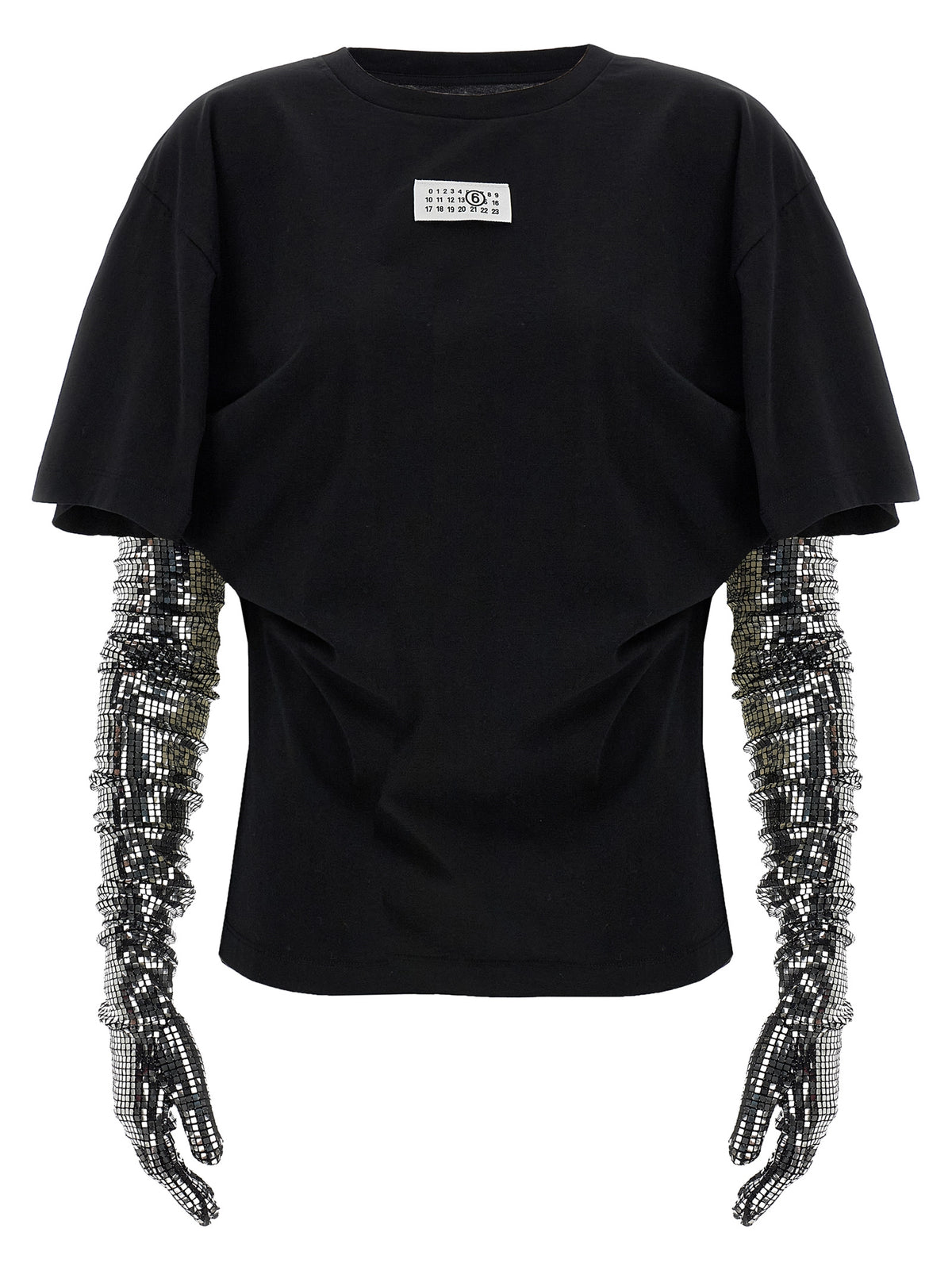 Cotton t-shirt with contrasting 'numeric signature mm6' front patch, Crew neck, 'white stitch line' at the back, Short sleeves and square sequin glove detail stitched at the waist._x000d_