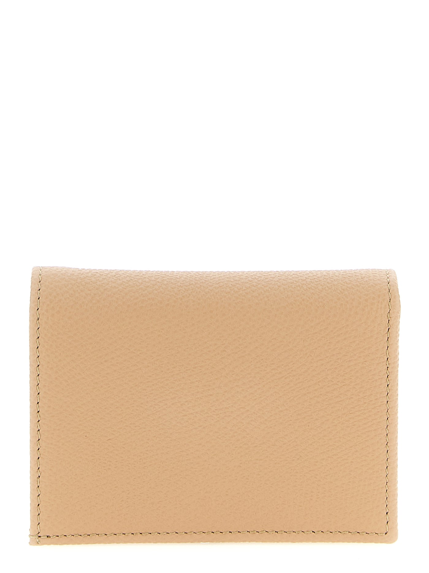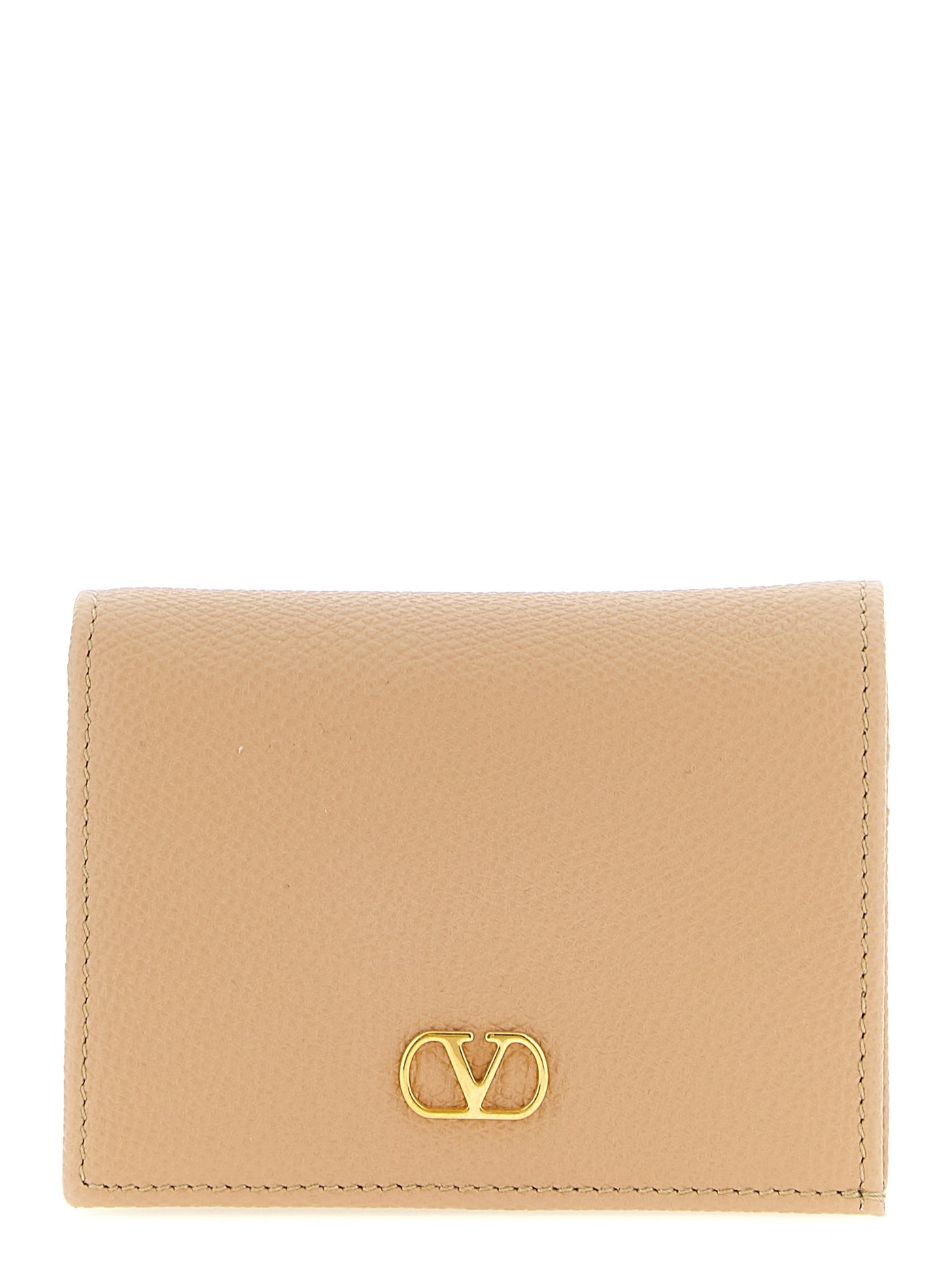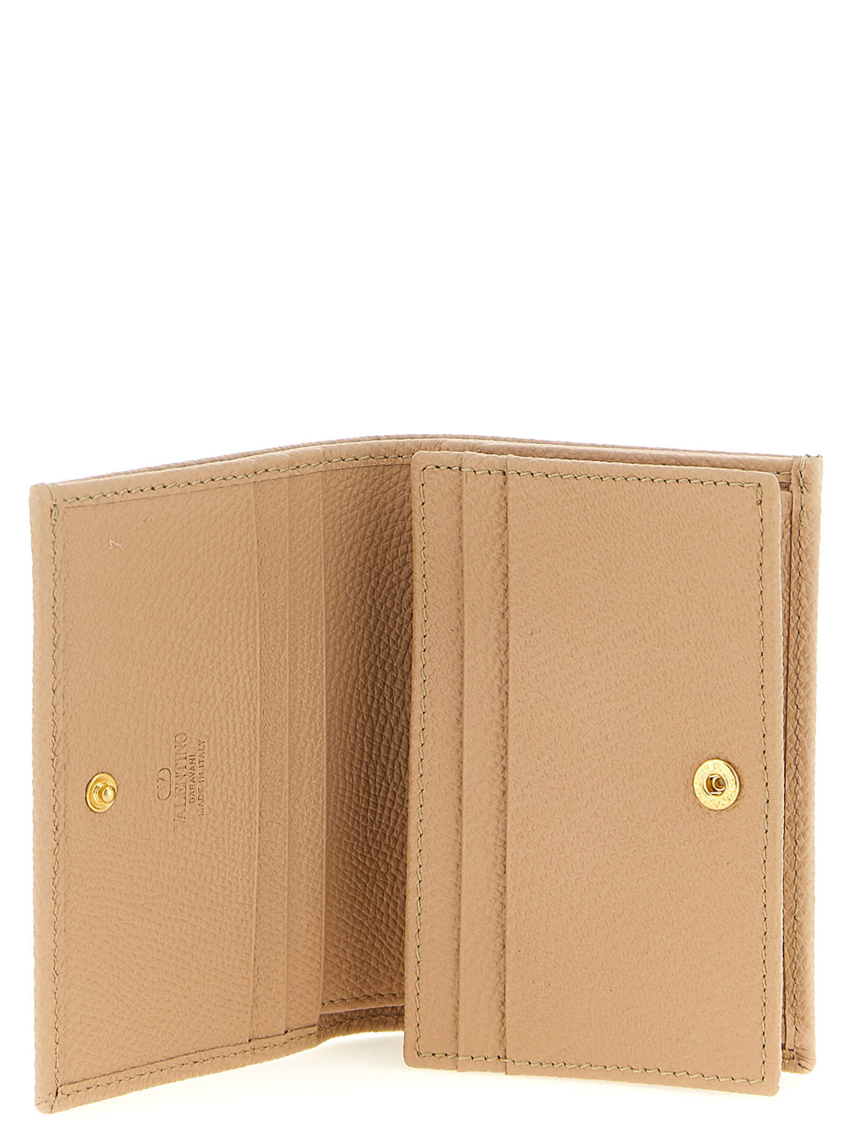 Grained calf leather wallet, flap closure with snap button and VLogo Signature metallic antiqued effect on the front. Size and Fit - W 11.5 x H 8.5 x D 3.5 cm
