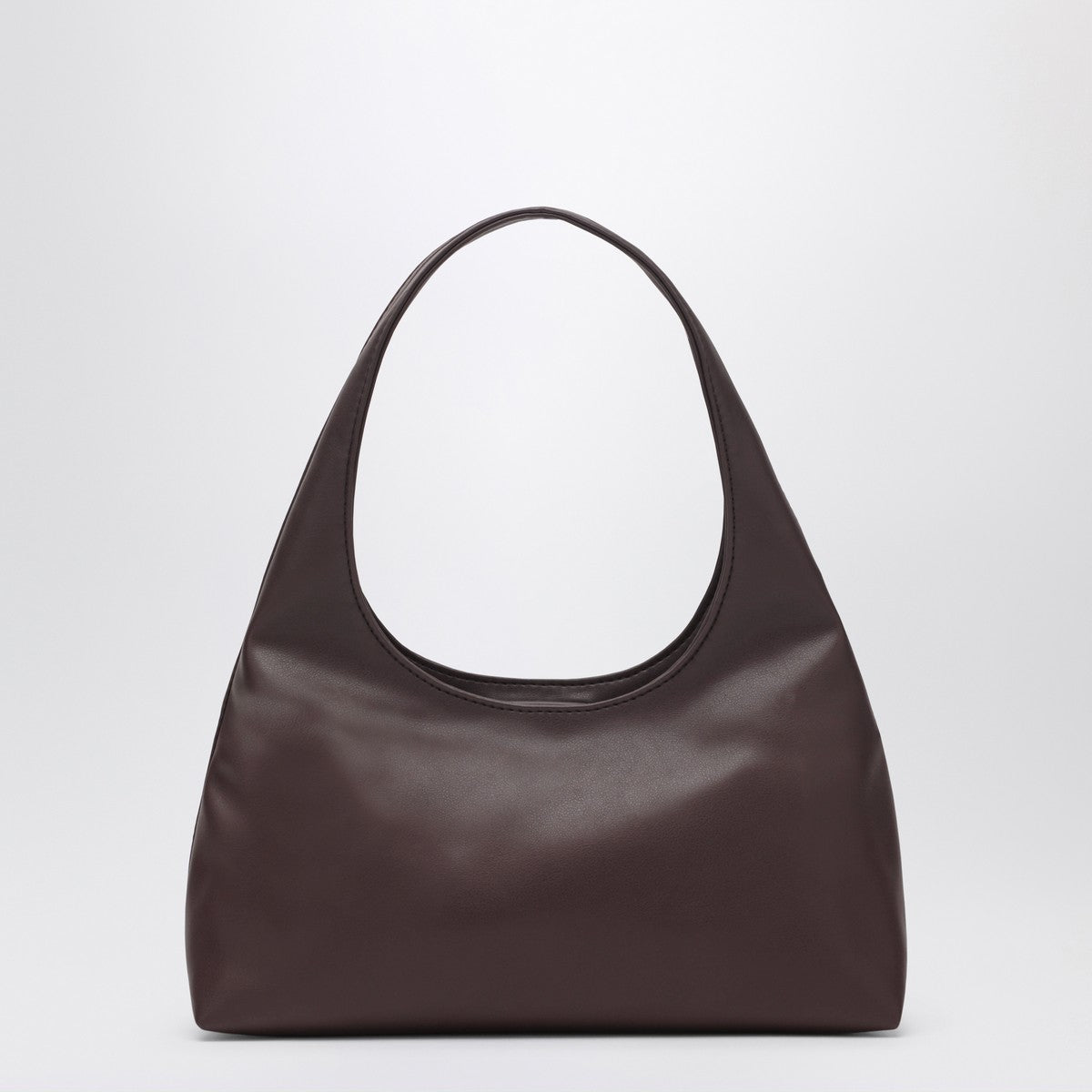 A.P.C. brown faux leather hobo shoulder bag, featuring two handles, magnetic closure, contrasting front logo print, and an internal pocket. Size and Fit - Width 26,5 cm x Height 13 cm x Depth 4,5 cm Handle drop: 20 cm