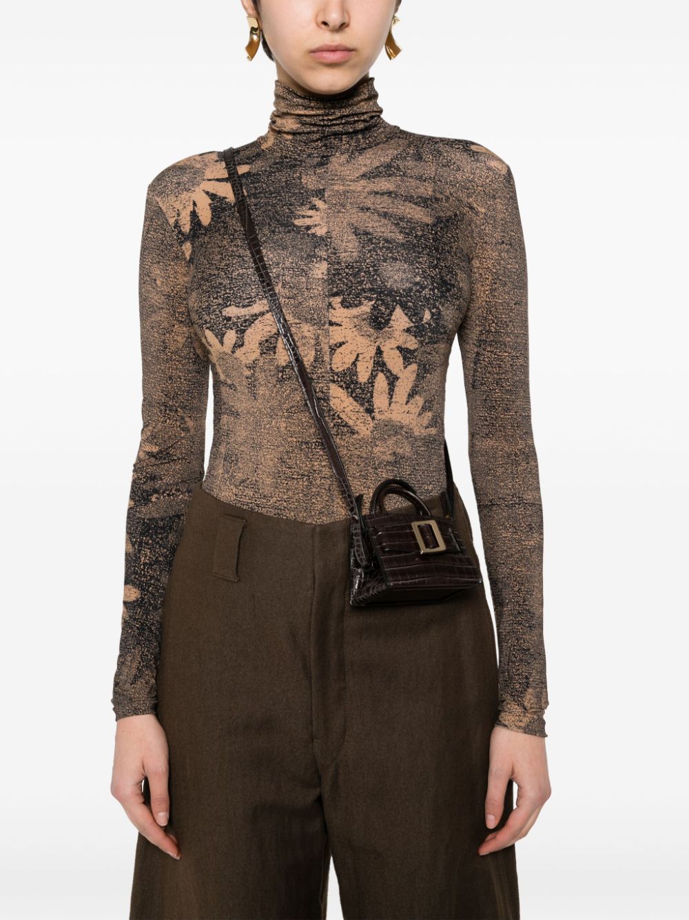 Borsa nero, in pelle di vitello, grana liscia, effetto coccodrillo in rilievo, fibbia con logo inciso, chiusura con cinturino con fibbia, cinturino da polso staccabile, due manici superiori arrotolati, tracolla staccabile, scomparto principale e fodera in pelle scamosciata. Bobby Charm leather mini bag Size and Fit - Width 4,13 in / 10,5 cm