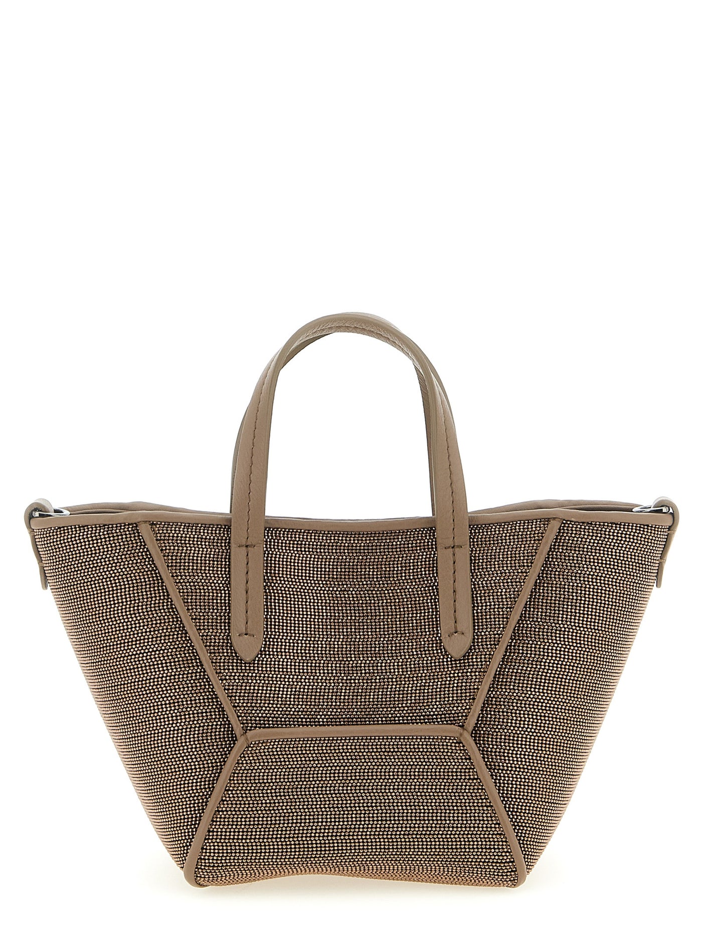 'bc duo precious' mini leather handbag with all-over monile application, Panel construction with visible stitching, Double fixed handle, Magnetic closure, Adjustable and removable leather shoulder strap. Size and Fit - W 25 x H 14 x D 10 cm