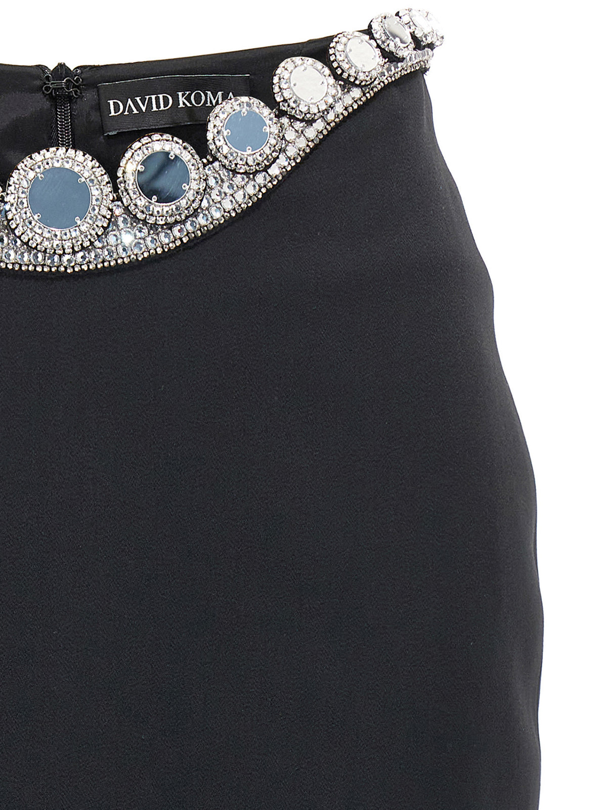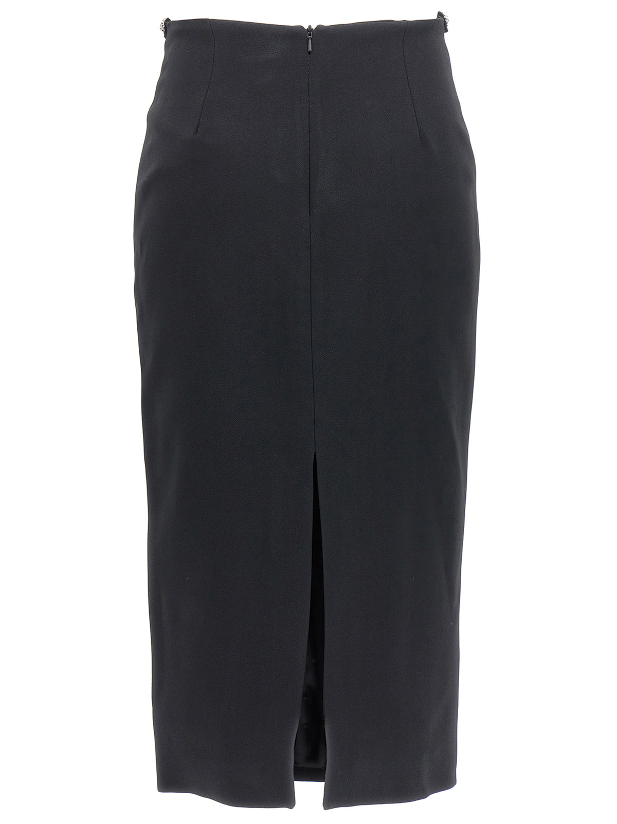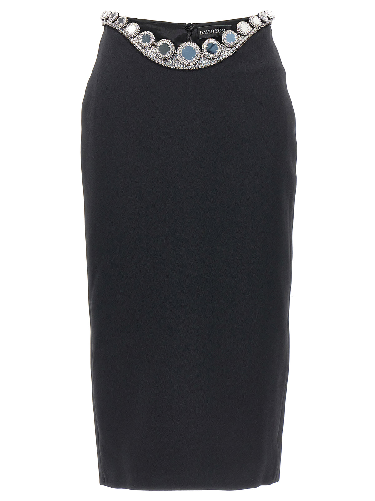 Cashmere circle embroidery' skirt in a viscose blend with jewel appliqué at the waist, A back zip closure and a back split. Size and Fit - True to size fit UK size