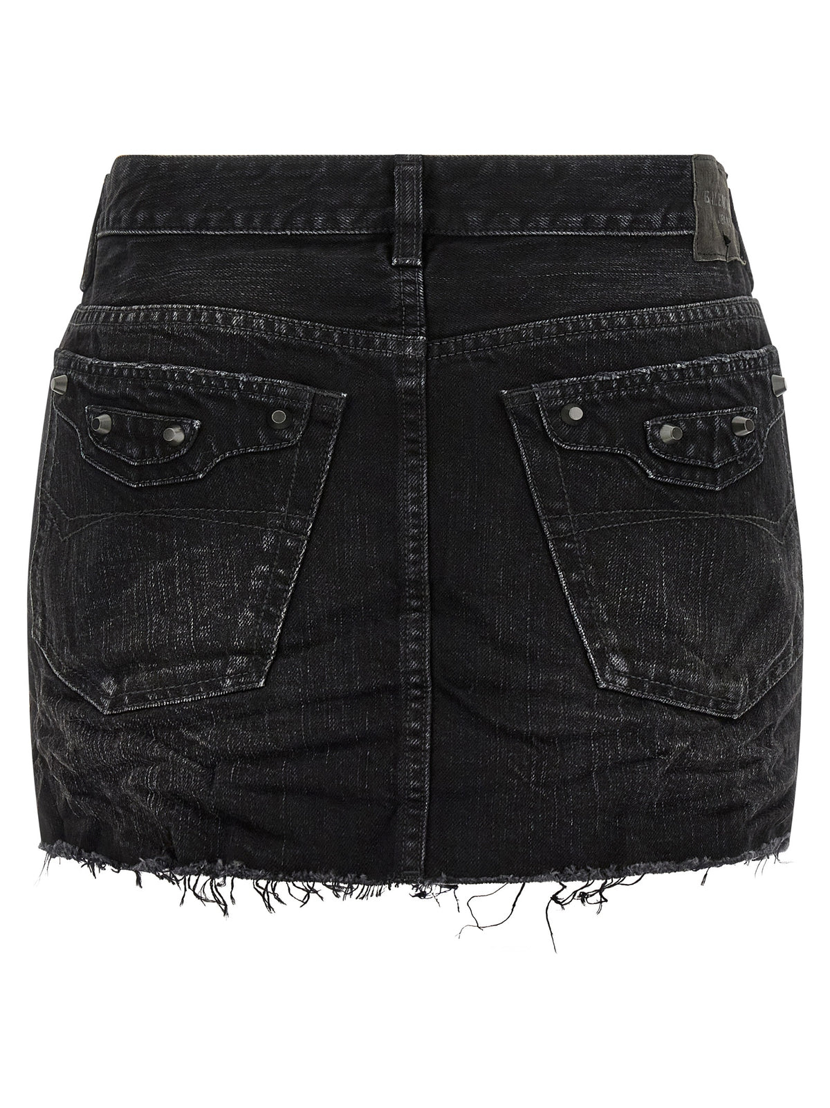 'City' miniskirt in used-effect stonewashed cotton denim, iconic details of the Le City bag on the front and back side pockets, front zip and button closure, pockets, back logo tag, and garment hem with raw cut hem. Size and Fit - true to size fit - FRENCH size