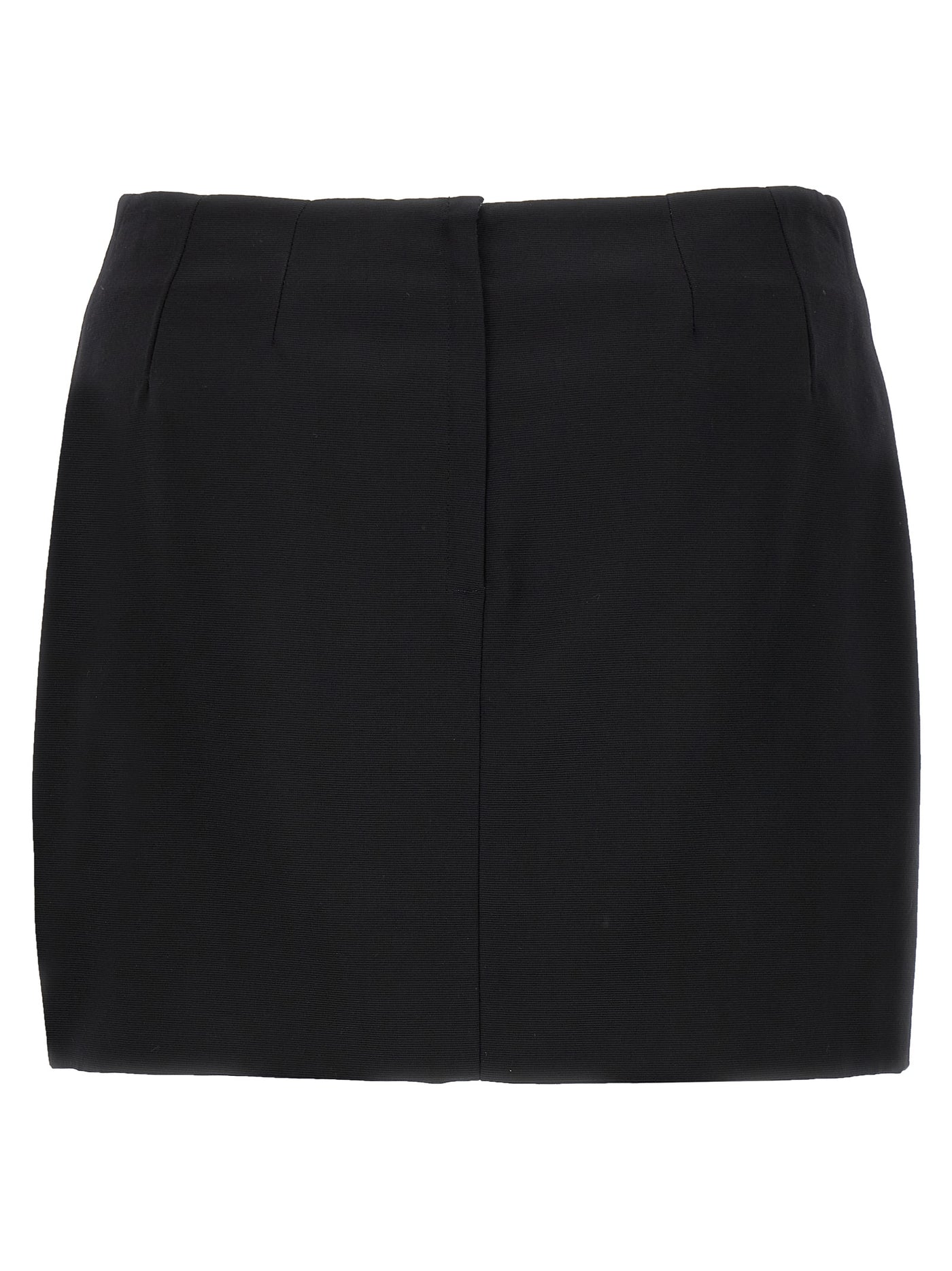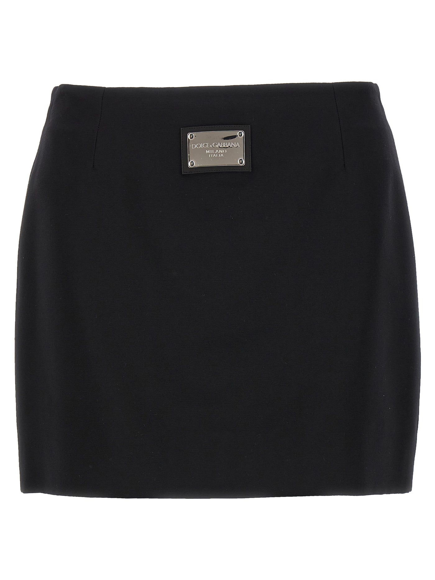 Mini skirt from the ‘Black Sicily’ collection in ottoman fabric with logo plaque on the front, rear zip closure, and stretch satin lining with jacquard logo. Size and Fit - true to size fit