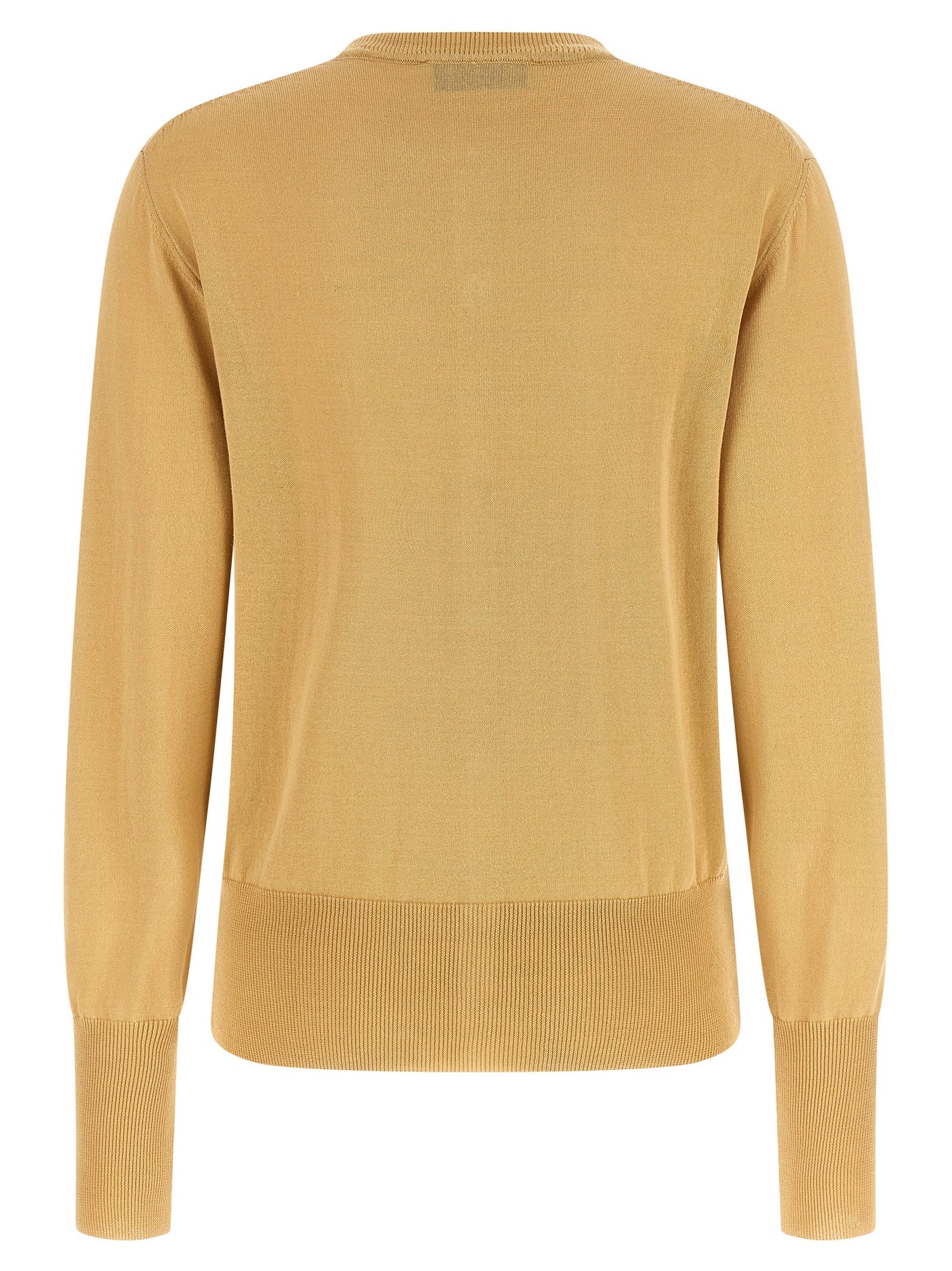 'bea' cotton cardigan with crew neck, 'orb' logo embroidery and front button closure, Long cuffed sleeves, And headband.