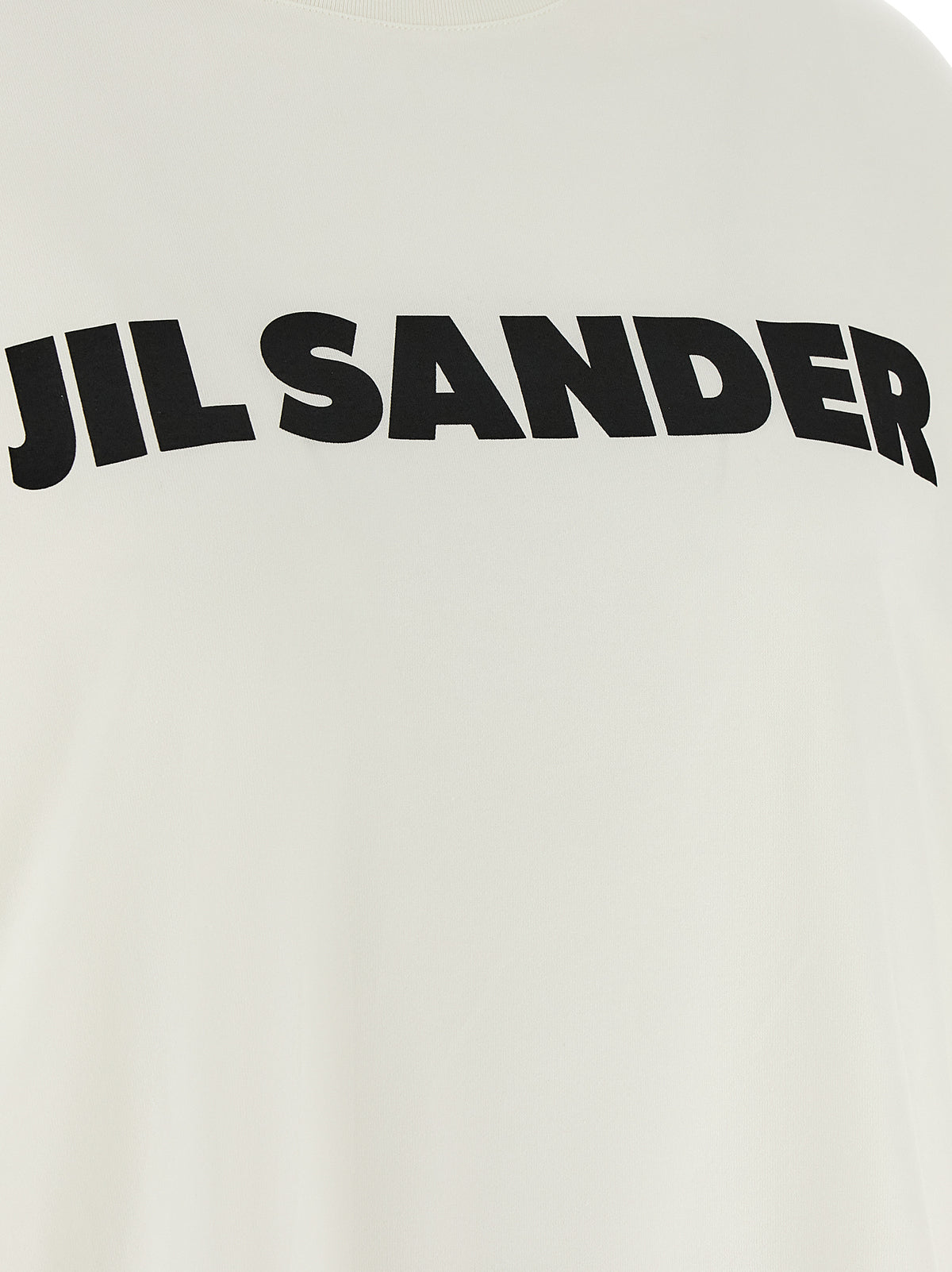 Light cotton jersey T-shirt with contrast 'Jil Sander' logo print on the front, crew neck, short sleeves with dropped shoulders. Size and Fit - oversized and boxy fit