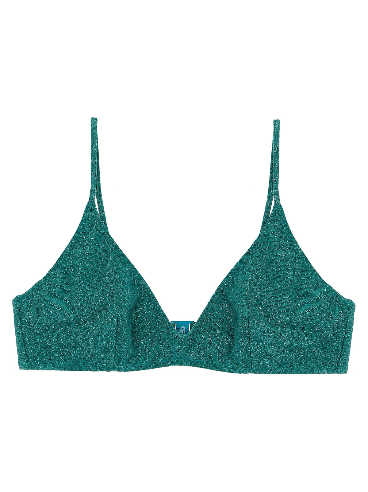 'Paloma' bikini top in stretch lurex fabric with triangle bralette model, back hook closure, adjustable shoulder straps. Size and Fit - true to size fit