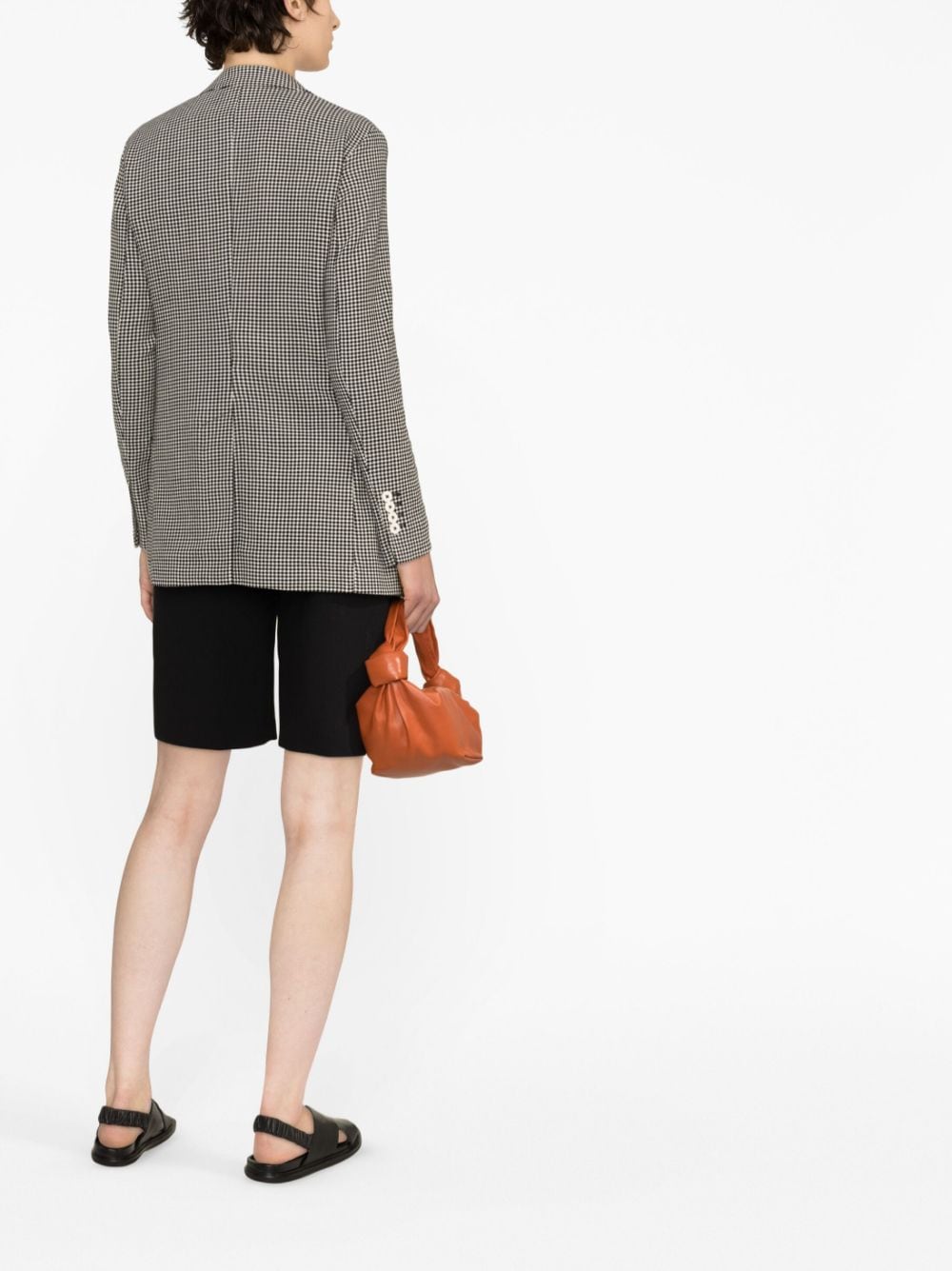 check-print double-breasted blazer from CIRCOLO 1901 featuring black/white, wool blend, check pattern, notched lapels, double-breasted button fastening, long sleeves, buttoned cuffs, chest welt pocket, side welt pocket, side flap pocket and central rear vent. Pied de poul double-breasted jacket Size and Fit - This piece fits true to size. We recommend you get your regular size. Model is 1,75m / 5ft 8in wearing size 40 (IT)