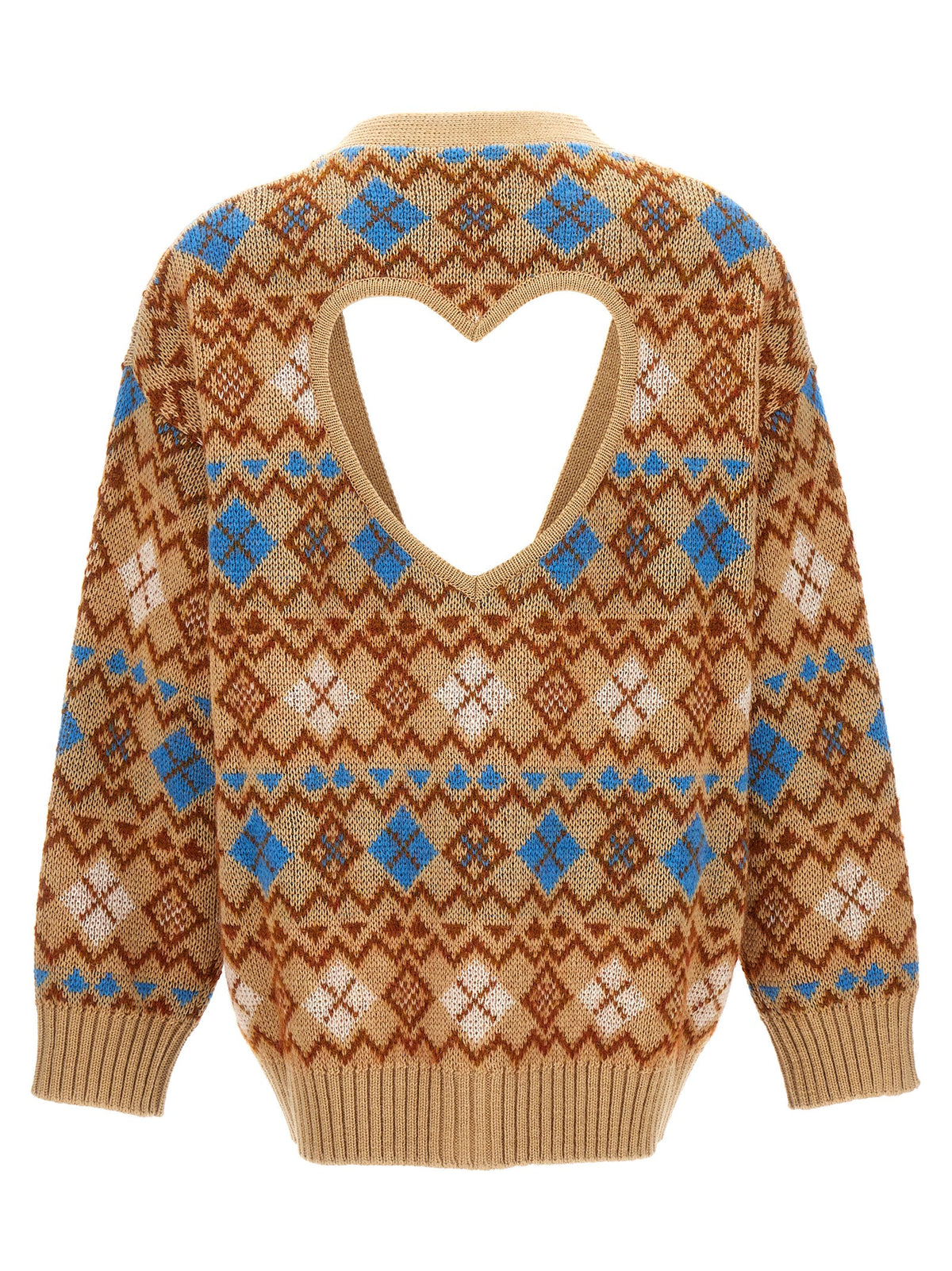 'Heart Vintage Shetland' cardigan in wool blend with all-over jacquard pattern, back cut-out detail, button closure, long cuffed sleeves. Size and Fit - true to size fit